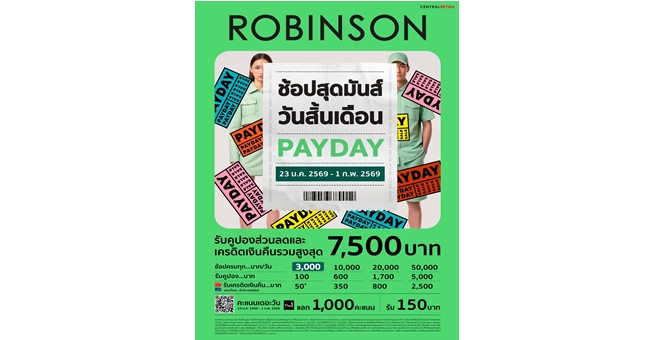 star_borderModal Upgrade Packageห้างโรบินสัน ในเครือเซ็นทรัล รีเทล จัดให้กับซิกเนเจอร์แคมเปญ “ROBINSON PAYDAY ช้อปสุดมันส์ วันสิ้นเดือน” เสิร์ฟโปรแรง คุ้ม X3 แบบจัดเต็มทั่วไทย27 ม.ค. 2569 11:01 น.