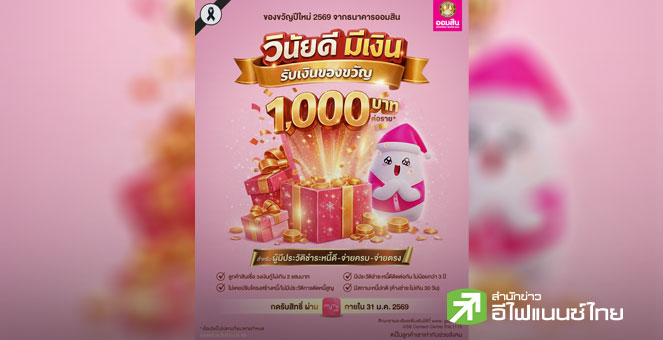 star_borderModal Upgrade Packageออมสิน ไม่ทิ้งลูกหนี้มีวินัย มอบของขวัญปีใหม่รายละ 1,000 บาท แก่ผู้มีประวัติชำระหนี้ดี-จ่ายครบ-จ่ายตรง6 ม.ค. 2569 12:15 น.