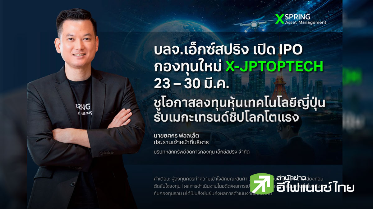• บลจ.เอ็กซ์สปริง เปิด IPO กองทุนใหม่ X-JPTOPTECH 23–30 มี.ค. ชูโอกาสลงทุนหุ้นเทคโนโลยีญี่ปุ่น รับเมกะเทรนด์ชิปโลกโตแรง