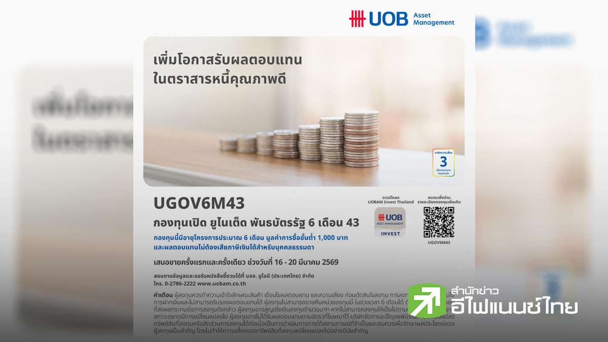 star_borderModal Upgrade Packageบลจ.ยูโอบี เสนอโอกาสลงทุนในพันธบัตรภาครัฐ กองทุน UGOV6M43 เปิด IPO 16-20 มี.ค.6916 มี.ค. 2569 14:43 น.