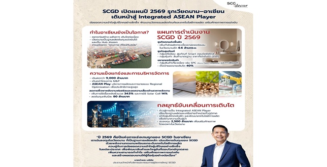 star_borderModal Upgrade PackageSCGD เปิดแผนธุรกิจ ปี 2569 รุกเร่งขยายเวียดนาม–อาเซียน สู่การเป็นผู้เล่นวัสดุตกแต่งพื้นผิวและสุขภัณฑ์ระดับภูมิภาคครบวงจร13 มี.ค. 2569 15:21 น.
