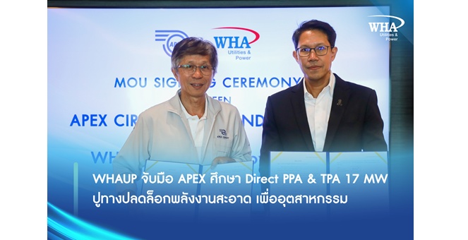 star_borderModal Upgrade PackageWHAUP จับมือ APEX ศึกษา Direct PPA & TPA 17 MW ปูทางปลดล็อกพลังงานสะอาด เพื่ออุตสาหกรรม13 Mar 2026 11:26