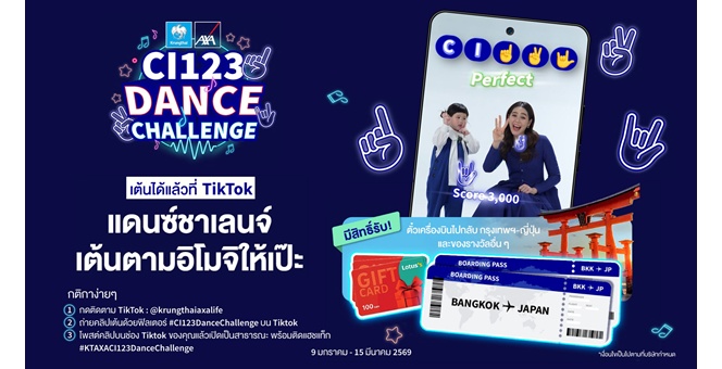 star_borderModal Upgrade Packageกรุงไทย-แอกซ่า ประกันชีวิต พร้อมน้องเกล และคุณชมพู่ ชวนทุกท่าน ร่วมแดนซ์กับกิจกรรม CI 123 Dance Challenge ลุ้นรางวัลใหญ่บินลัดฟ้าสู่ญี่ปุ่น14 ม.ค. 2569 15:07 น.