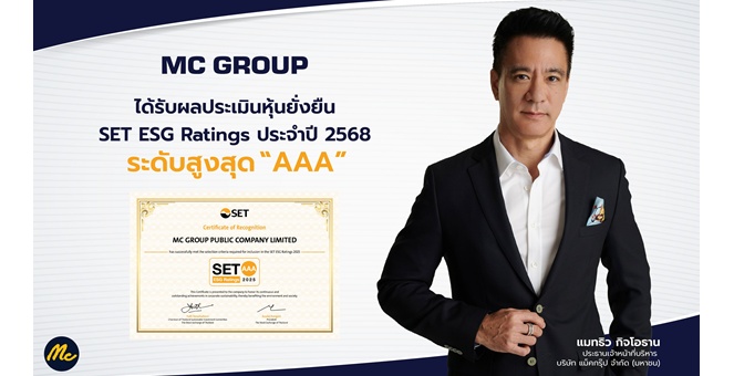 star_borderModal Upgrade PackageMC ปลื้ม!! คว้า SET ESG Ratings ประจำปี 2568 ระดับสูงสุด “AAA” ต่อเนื่องเป็นปีที่ 2 ตอกย้ำการดำเนินธุรกิจที่ยั่งยืน25 ธ.ค. 2568 15:11 น.
