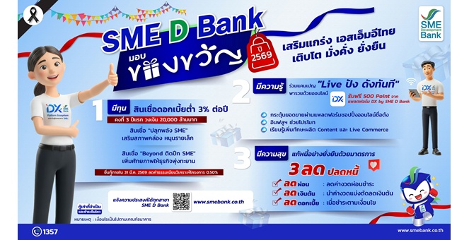 star_borderModal Upgrade PackageSME D Bank จัดใหญ่มอบแพ็กเกจของขวัญปีใหม่เพื่อเอสเอ็มอีไทย เติมทุนสินเชื่อดอกเบี้ยต่ำ 3% ช่วยเสริมสภาพคล่อง ต่อยอดเพิ่มรายได้ด้วยออนไลน์29 ธ.ค. 2568 11:24 น.