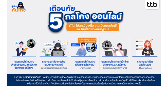 star_borderModal Upgrade Packageทีทีบี เตือนภัย 5 กลโกงออนไลน์ รู้ทัน! ไม่ตกเป็นเหยื่อ จับโป๊ะมิจฉาชีพก่อนสูญเงินหมดบัญชี และเสี่ยงพัวพันบัญชีม้า19 Dec 2025 17:12