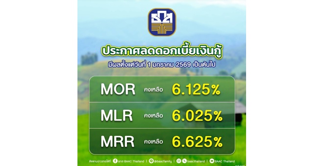 star_borderModal Upgrade Packageธ.ก.ส. ประกาศลดอัตราดอกเบี้ยเงินกู้ สูงสุดร้อยละ 0.25 ต่อปี18 ธ.ค. 2568 17:04 น.