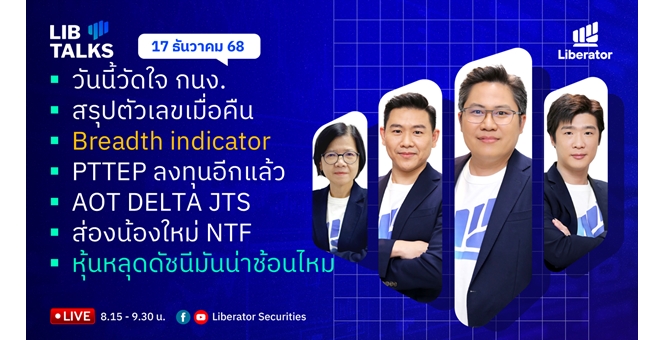 star_borderModal Upgrade Packageบล.ลิเบอเรเตอร์ : `LIB Guide Daily Strategy` 17/12/6817 ธ.ค. 2568 08:55 น.