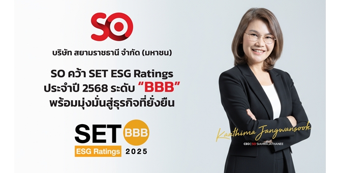 star_borderModal Upgrade PackageSO คว้า SET ESG Ratings ปี 68 ระดับ “BBB” พร้อมมุ่งมั่นสู่ธุรกิจที่ยั่งยืน16 ธ.ค. 2568 12:50 น.