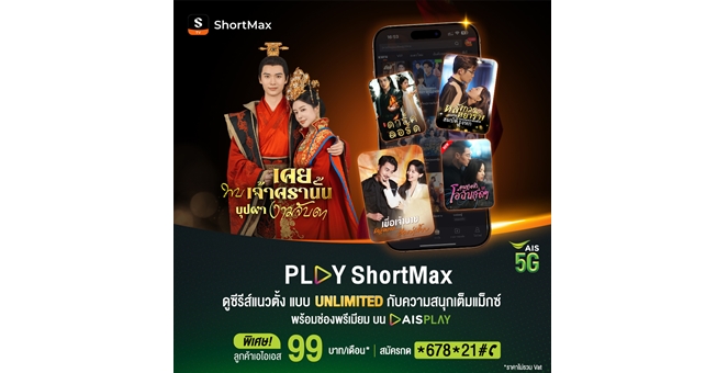star_borderModal Upgrade PackageAIS สร้างปรากฏการณ์ความบันเทิงแนวตั้งครั้งแรก! เปิดตัวแพ็ก “PLAY ShortMax” ดูซีรีส์แนวตั้งแบบ Unlimited เพียง 99 บาท/เดือน15 ธ.ค. 2568 12:41 น.