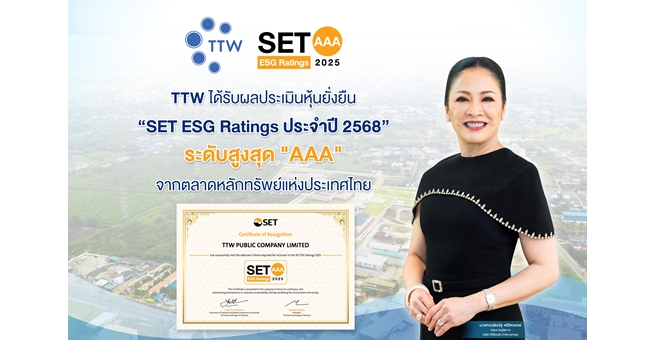 star_borderModal Upgrade PackageTTW ได้รับผลประเมินหุ้นยั่งยืน “SET ESG Rating ระดับสูงสุด AAA” ประจำปี 2025 จากตลาดหลักทรัพย์แห่งประเทศไทย15 ธ.ค. 2568 13:09 น.