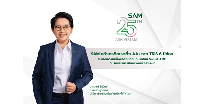star_borderModal Upgrade PackageSAM ได้รับการจัดอันดับเครดิตจาก TRIS ที่ระดับ “AA+” ด้วยแนวโน้มอันดับเครดิต “Stable” หรือ “คงที่” 6 ปีติดต่อกัน พร้อมชูบทบาทใหม่ Social AMC “บริษัทบริหารสินทรัพย์เพื่อสังคม” ของชาติแห่งเดียว15 ธ.ค. 2568 11:12 น.