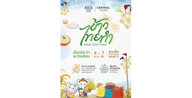 star_borderModal Upgrade Package4-7 ธันวาคมนี้ กลับมาอีกครั้งกับงานเทศกาลข้าวที่ใหญ่ที่สุดในประเทศไทย ที่รวบรวมข้าวหลากหลายสายพันธุ์จากทั่วประเทศไว้ที่ เซ็นทรัล ทำ พาวิลเลียน26 พ.ย. 2568 14:20 น.