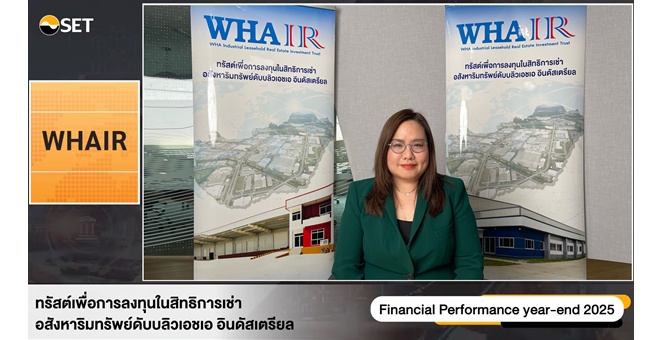 • WHAIR ทุบสถิติรายได้สูงสุด 1,017 ล้านบาท โชว์กำไรโต 18% พร้อมจ่ายปันผล 0.1755 บาท/หน่วย ชูความแข็งแกร่งพอร์ตสินทรัพย์คุณภาพใน EEC