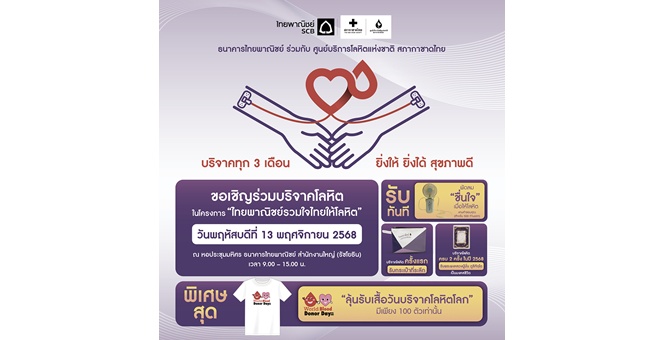 star_borderModal Upgrade Packageกลุ่มเอสซีบีเอกซ์ โดยธนาคารไทยพาณิชย์ ร่วมกับศูนย์บริการโลหิตแห่งชาติ สภากาชาดไทย ขอเชิญร่วมบริจาคโลหิต 13 พ.ย.นี้6 พ.ย. 2568 16:47 น.