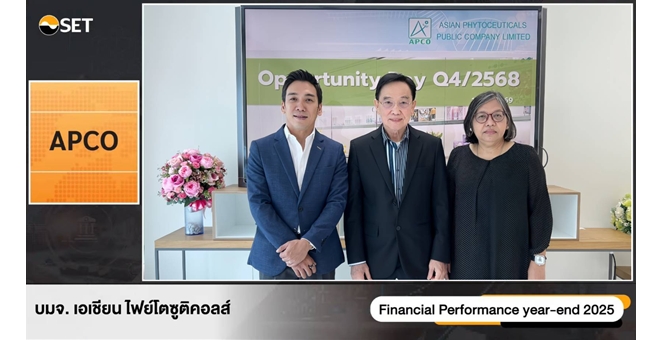 APCO โชว์งบปี 68 รายได้รวม 216.29 ล้านบาท เตรียมปันผล 100% 0.091 บาท/หุ้น