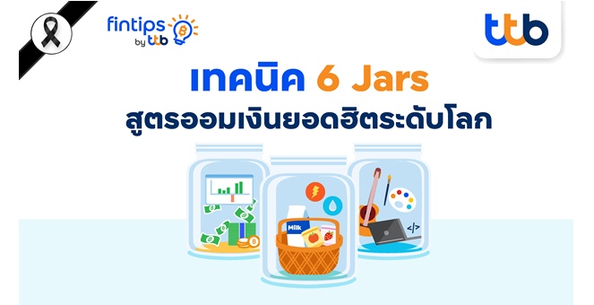 star_borderModal Upgrade Packageทีทีบี ฟินทิป พารู้จัก “6 Jars” สูตรออมเงินยอดฮิตระดับโลก ออมง่าย ใช้ได้จริง แค่มีวินัย12 มี.ค. 2569 13:31 น.