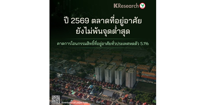 • ศูนย์วิจัยกสิกรไทย คาดปี 2569 ตลาดที่อยู่อาศัยยังไม่พ้นจุดต่ำสุด การโอนกรรมสิทธิ์ที่อยู่อาศัยทั่วประเทศหดตัว 5.1%