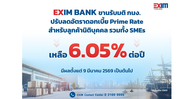 star_borderModal Upgrade PackageEXIM BANK ขานรับมติ กนง. แบ่งเบาภาระภาคธุรกิจโดยเฉพาะ SMEs ปรับลดอัตราดอกเบี้ย Prime Rate เหลือ 6.05% ต่อปี4 มี.ค. 2569 15:59 น.