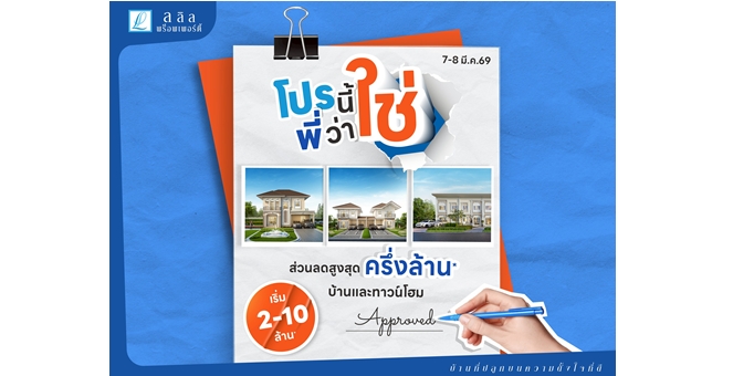 star_borderModal Upgrade Package7-8 มี.ค. 69 “ลลิล พร็อพเพอร์ตี้” จัดแคมเปญ “โปรนี้พี่ว่าใช่” บ้านและทาวน์โฮมลดสูงสุดกว่าครึ่งล้านบาท2 มี.ค. 2569 12:39 น.