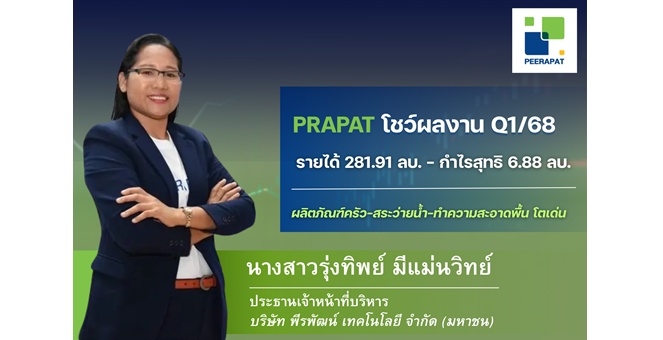 star_borderModal Upgrade PackagePRAPAT กวาดรายได้ Q1/68 แตะ 282.91 ลบ. ผลิตภัณฑ์ครัว-สระว่ายน้ำ-น้ำยาทำความสะอาด หนุนการเติบโตโดดเด่น พร้อมรุกต่อตลาด CLMV ดันเป้ารายได้ปีนี้โต 10-15%16 พ.ค. 2568 15:10 น.