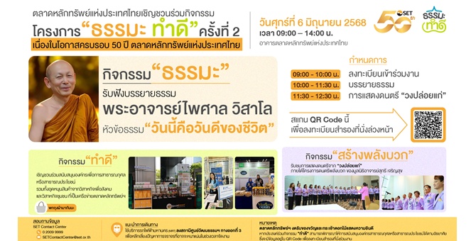 star_borderModal Upgrade Packageตลาดหลักทรัพย์ฯ เชิญร่วมงาน `ธรรมะ ทำดี` ครั้งที่ 2 วันที่ 6 มิ.ย.นี้16 พ.ค. 2568 14:26 น.