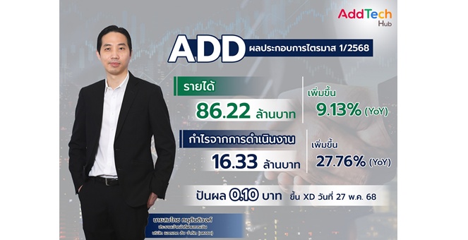 star_borderModal Upgrade PackageADD อวดกำไรโค้งแรก โต 27.76% (YoY) บอร์ดเคาะจ่ายปันผล 0.10 บาท จ่อ XD 27 พ.ค.นี้16 พ.ค. 2568 14:40 น.