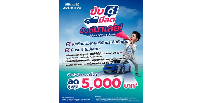 star_borderModal Upgrade Packageอลิอันซ์ อยุธยา หนุนพฤติกรรมขับขี่ปลอดภัย เปิดตัวแคมเปญ “ขับดี มีลด” มอบส่วนลดสูงสุด 5,000 บาท15 พ.ค. 2568 17:05 น.
