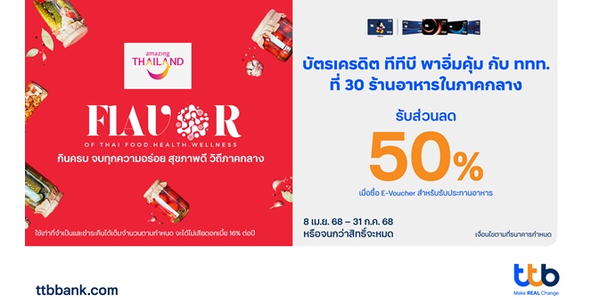 star_borderModal Upgrade Packageบัตรเครดิต ทีทีบี จับมือ ททท. ชวนสายกินร่วมสัมผัสเสน่ห์อาหารไทยภาคกลาง รับสิทธิ์อิ่มคุ้มด้วยส่วนลด 50% กว่า 30 ร้านอาหาร15 พ.ค. 2568 17:14 น.