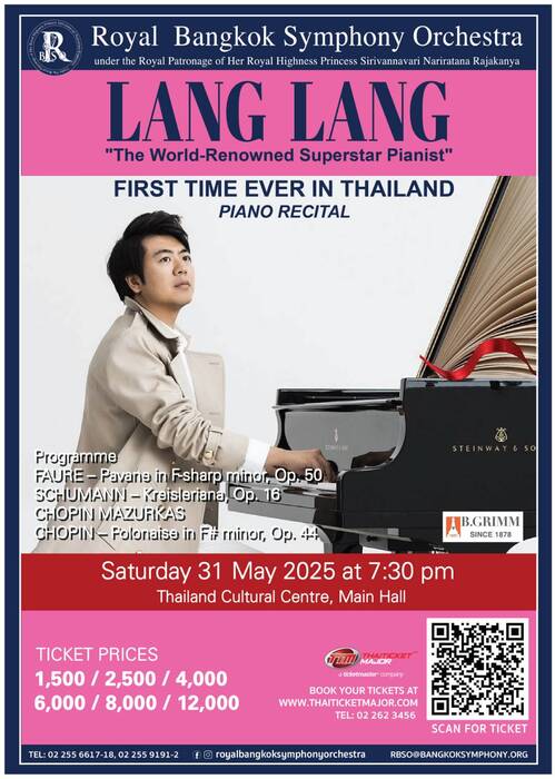 star_borderModal Upgrade PackageRBSO ชวนสัมผัสมนต์เสน่ห์แห่งดนตรีด้วยเดี่ยวเปียโนของ LANG LANG นักเปียโนระดับโลกเป็นครั้งแรกในประเทศไทย29 เม.ย. 2568 18:12 น.