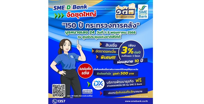 star_borderModal Upgrade PackageSME D Bank จัดชุดใหญ่ในงาน “150 ปี กระทรวงการคลัง” โปรโมชันสินเชื่อพิเศษเพื่อเอสเอ็มอีไทย ดอกเบี้ยเพียง 3% ต่อปี ยื่นกู้ได้ทันที25 เม.ย. 2568 12:20 น.