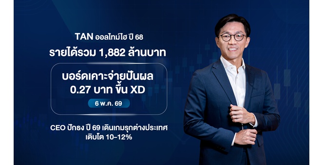 star_borderModal Upgrade Packageธนจิรา กรุ๊ป ทำนิวไฮ ปี 68 สร้างรายได้รวม 1,882 ล้านบาท เคาะจ่ายปันผล 0.27 บาทต่อหุ้น สะท้อนฐานะการเงินแข็งแกร่ง เดินหน้าขับเคลื่อนธุรกิจไลฟ์สไตล์รีเทลครบวงจร26 ก.พ. 2569 09:24 น.
