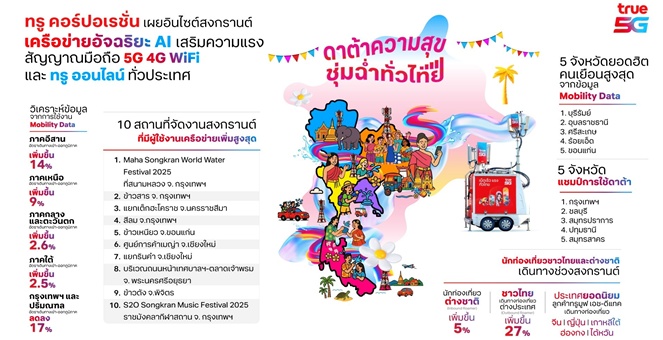 star_borderModal Upgrade Packageทรู คอร์ปอเรชั่น เผยอินไซต์ความสุขเทศกาลสงกรานต์จากเครือข่ายอัจฉริยะ AI เสริมความแรงสัญญาณ 5G 4G WiFi และทรู ออนไลน์รองรับความสนุกชุ่มฉ่ำทั่วประเทศ17 เม.ย. 2568 15:39 น.