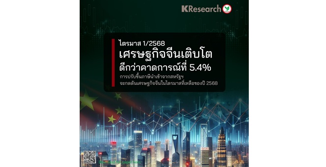 star_borderModal Upgrade Packageศูนย์วิจัยกสิกรฯ เผยไตรมาส 1/2568 เศรษฐกิจจีนเติบโตดีกว่าคาดการณ์ที่ 5.4% การปรับขึ้นภาษีนำเข้าจากสหรัฐฯ จะกดดันเศรษฐกิจจีนในไตรมาสที่เหลือของปี 256816 เม.ย. 2568 16:14 น.