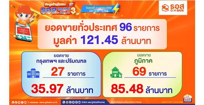 star_borderModal Upgrade Packageธอส. เผยผลประมูลบ้านมือสองออนไลน์ ประจำเดือนเมษายน 2568 จำหน่ายได้ 96 รายการ มูลค่ารวม 121.45 ล้านบาท11 เม.ย. 2568 12:23 น.