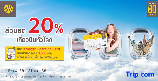 star_borderModal Upgrade Packageรับส่วนลด 20% เมื่อจองเที่ยวบินทั่วโลก ผ่านบัตร Krungsri Boarding Card ที่ Trip.com9 เม.ย. 2568 17:19 น.