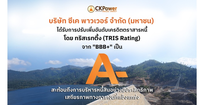 star_borderModal Upgrade Package`CKPower` ได้รับการปรับเพิ่มอันดับเครดิตหุ้นกู้ เป็น `A-` จาก `BBB+` โดยทริสเรทติ้ง8 เม.ย. 2568 12:01 น.