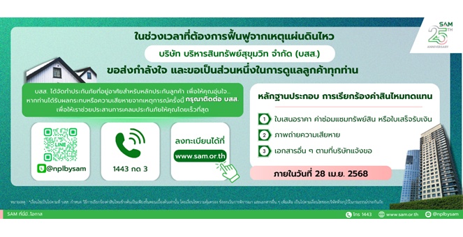 star_borderModal Upgrade PackageSAM ห่วงใยลูกค้าได้รับผลกระทบเหตุแผ่นดินไหว เร่งสำรวจความเสียหาย เปิด 3 ช่องทางเป็นตัวกลางอำนวยความสะดวกลูกค้าแจ้งเคลมปรับปรุงที่อยู่อาศัย8 เม.ย. 2568 14:22 น.