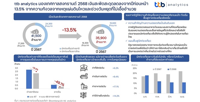 star_borderModal Upgrade Packagettb analytics มองเทศกาลสงกรานต์ 2568 เงินสะพัดสะดุด ลดลงจากปีก่อนหน้า 13.5% จากความกังวลจากเหตุแผ่นดินไหวและช่วงวันหยุดที่ไม่เอื้ออำนวย3 เม.ย. 2568 17:28 น.