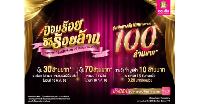 star_borderModal Upgrade Packageฉลองใหญ่วันสถาปนาธนาคาร สลากออมสินพิเศษ 1 ปี “ออมร้อย ชิงร้อยล้าน” เริ่มฝากแค่ 100 มีสิทธิ์ลุ้น 100 ล้าน เปิดฝากสลากแล้ววันนี้2 เม.ย. 2568 15:45 น.