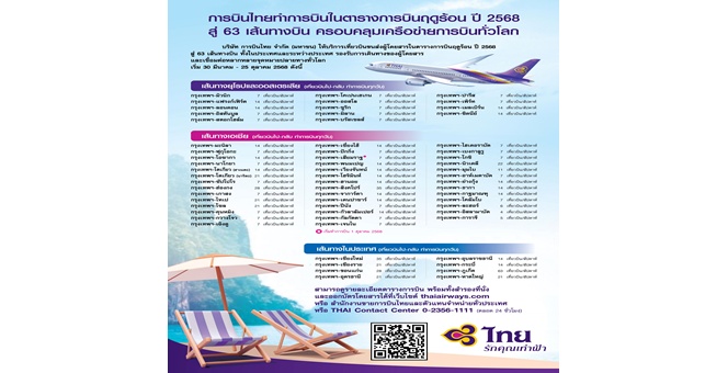 star_borderModal Upgrade Packageการบินไทยทำการบินในตารางการบินฤดูร้อน ปี 2568 สู่ 63 เส้นทางบิน ครอบคลุมเครือข่ายการบินทั่วโลก1 เม.ย. 2568 16:48 น.