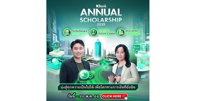 star_borderModal Upgrade Packageกสิกรไทย เปิดรับสมัครทุน ป.โท ‘KBank Annual Scholarship 2025’ ให้โอกาสคนทำงานที่มีประสบการณ์ 1 ปีขึ้นไป เรียนฟรีมหาวิทยาลัยชั้นนำระดับโลกในต่างประเทศ26 มี.ค. 2568 11:11 น.