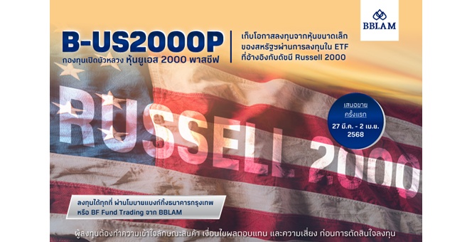 star_borderModal Upgrade PackageBBLAM เปิดกองใหม่ลงทุนในหุ้นสหรัฐฯ ขนาดเล็ก หนุนนักลงทุนเก็บโอกาสลงทุนในตลาดหุ้นสหรัฐฯ ให้ครบ‘กองทุน B-US2000P’ IPO 27 มี.ค. – 2 เม.ย.นี้25 มี.ค. 2568 11:40 น.