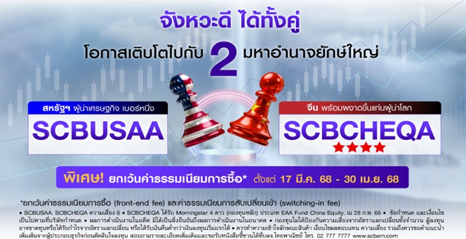 star_borderModal Upgrade Packageบลจ. ไทยพาณิชย์ จัดแคมเปญ ฟรีค่าธรรมเนียม(*) เสิร์ฟโอกาสลงทุนเติบโต กับ 2 มหาอำนาจยักษ์ใหญ่ กองทุน SCBUSAA และ SCBCHEQA เมื่อลงทุนผ่าน SCBAM FUND CLICK ระหว่างวันที่ 17 มี.ค.- 30 เม.ย. 6817 มี.ค. 2568 10:47 น.