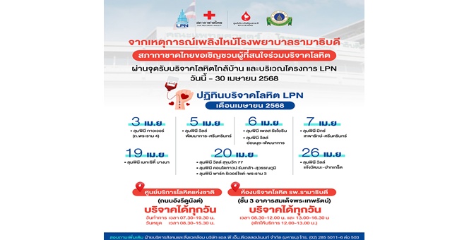 star_borderModal Upgrade Packageสภากาชาดไทยเชิญชวนผู้ที่สนใจ ร่วมบริจาคโลหิตช่วยเหลือผู้ป่วยโรงพยาบาลรามาธิบดี ผ่านจุดรับบริจาคโลหิตใกล้บ้าน และบริเวณโครงการ LPN17 มี.ค. 2568 11:08 น.