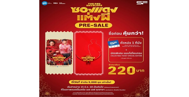 star_borderModal Upgrade Packageเอส เอฟ ร่วมกับ จีดีเอช ห้าห้าเก้า ชวนร่วมงานแต่งสุดฮาใน “ซองแดงแต่งผี` (The Red Envelope)” ดูหนังพร้อมรับของที่ระลึกสุดเอ็กซ์คลูซีฟ ที่ เอส เอฟ เท่านั้น!!17 มี.ค. 2568 11:27 น.