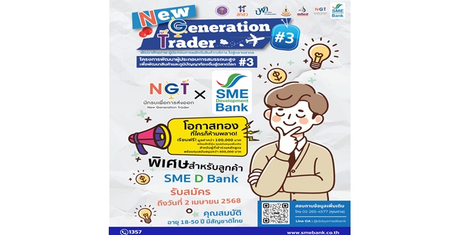 star_borderModal Upgrade PackageSME D Bank จับมือพันธมิตร ลุยโครงการ “New Generation Trader3” เปิดรับสมัครผู้สนใจเข้าติวเข้ม ปั้นเป็นนักรบเศรษฐกิจพาสินค้าไทยบุกตลาดโลก14 มี.ค. 2568 09:11 น.