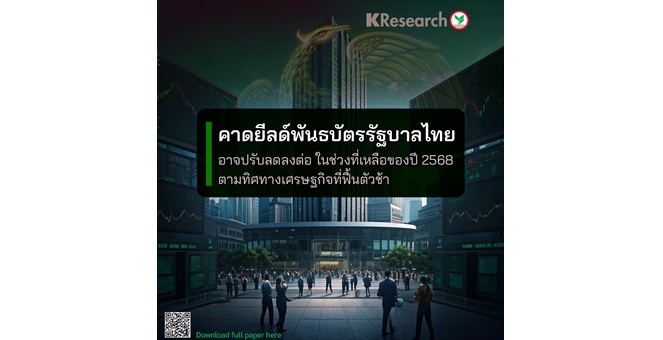 star_borderModal Upgrade Packageศูนย์วิจัยกสิกรไทย คาดยีลด์พันธบัตรรัฐบาลไทยอาจปรับลดลงต่อในช่วงที่เหลือของปี 2568 ตามทิศทางเศรษฐกิจที่ฟื้นตัวช้า13 มี.ค. 2568 12:07 น.