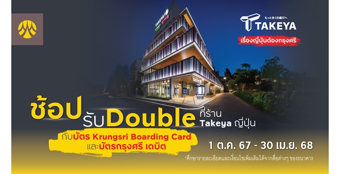 star_borderModal Upgrade Packageช้อปรับ Double ที่ร้าน Takeya ญี่ปุ่น กับบัตร Krungsri Boarding Card และบัตรกรุงศรี เดบิต7 มี.ค. 2568 15:41 น.