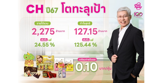 star_borderModal Upgrade PackageCH ฟอร์มสวย อวดงบปี 67 รายได้ 2,275 ลบ. กำไรพุ่ง 125.44% แง้มข่าวดีเตรียมจ่ายปันผล 0.10 บาท/หุ้น26 ก.พ. 2568 13:31 น.